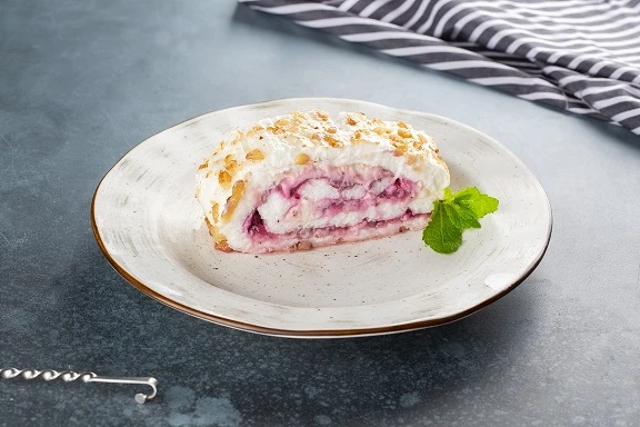 Нежный рулет с сыром, сливками, ягодами и орехами